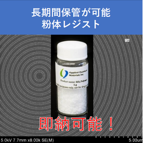 AQM社のH-SiOxは粉体・溶液2種類を提供可能なネガ型のレジストです。 Dow XR-154やFOXと同等の性能を提供可能です。 粉体・溶液はそれぞれに特徴がございます。 【粉体】 長期間の保管が可能:1年間保存可能なので長期間において少量ずつのご使用が可能です。 即納対応:必要な時にすぐに手に入ります。 常時同じ粘度での使用が可能:使用前に混合するので増粘しません。 濃度調整可能:アプリケーションに合わせた幅広い範囲の膜厚を作成可能です。 最高レベルの線幅:7nmの線幅を実現 【液体】 少量から購入可能:必要量に応じて対応します。 短納期:受注後1カ月以内での納品が可能です。 受注生産:より長いシェルライフでのお届けが可能です。 最高レベルの線幅:7nmの線幅を実現 お問い合わせは弊社担当【北野】まで。