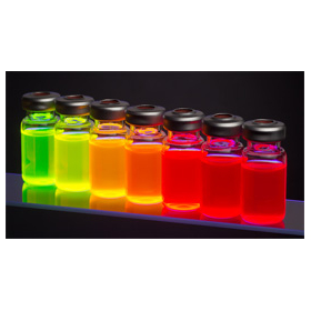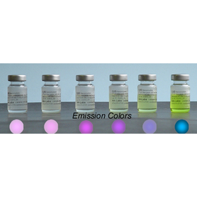 硫化カドミウムナノ結晶は量子ドットとしても良くしられている単結晶半導体ナノ粒子です。これらの量子ドットの独自性は、粒子のサイズにより光学、電気特性が異なり、柔軟なプロセス可能性によってもたらされます。これらの量子ドットのサイズは2~7ナノメーターで、紫外域から青色の波長全般の光学特性を持っております。一般的な硫化カドミウムの量子ドットは有機配位子が表面にコーティングされた無機半導体です。これらの配位子は、溶剤の中でのこれらのナノ結晶の安定性と溶解性、加工可能性を可能に致します。有機色素とは異なり、量子ドットは幅広い範囲の光を吸収して、限定された光を発光します。この特性は、幅広い範囲の光で励起することで、限定された波長の真の色の発光を得ることを可能にします。量子ドットの発光ポテンシャルは、溶剤の中のナノ結晶の品質とサイズ分布によって決まります。