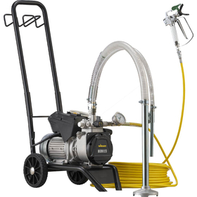 HERO23 は、ハイパワーと高耐久性を追求した電動ダイアフラムポンプ式エアレス塗装機で、中〜大規模の建築塗装現場に最適なモデルです。WAGNER独自のロングストローク技術によりバキューム力が強化され、安定した吸引と均一な吐出を実現します。これにより粘度の異なる幅広い塗料に対応でき、現場での汎用性が大幅に向上しています。また標準装備のHEAチップは最大55%の飛散減少を可能にし、低圧での霧化により塗料ロスと跳ね返りを大幅に削減、仕上がり品質を高めながら作業効率の向上に寄与します。ダイアフラム方式による低頻度ストロークは機械部品への負荷を軽減し、長寿命化とメンテナンスコストの抑制を両立。折りたたみ式カートや30mホース採用など、現場環境への機動性も考慮されています。プロ用途に求められる強さ・耐久性・コスト効率を高次元で融合したモデルです。