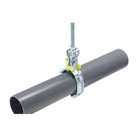 天井から吊り下げられる横引き配管(SGP管・VP管・VU管)を支持するための金具です。 配管を押し上げてボルトを締めるだけで施工が完結! 【Point1】早い! 1 配管を押し上げて仮置き 2 ボルトを締めるだけ 【Point2】確実!安心! ボルトの締め忘れがなく施工完了を目視できる!