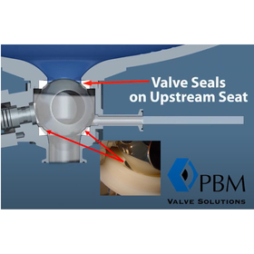 1次側で流体のシールが可能になることで、下記1)~3) のオプションを追加し、ボールバルブ特有の液溜まりによる固着・コンタミネーション・雑菌発生の問題を解決します。 1)異形ボール(写真) バルブ開時:1次側/2次側でのダブルシール バルブ閉時:1次側のみシールされ、2次側シール部は異形ボールとの間隙が出来、バルブ内の液だまりを2次側に排出可能となります。また、パージポートを追加することにより、閉時にバルブ内の洗浄も可能となります。 2)セルフクリーニング バルブ開時:ボール自体にメインホールとは別に循環用ホールを追加することにより、バルブ内全域に流体が入り、1次側より供給される流体でバルブ内が置換し続け液だまり箇所を無くせます。 バルブ閉時:1次側/2次側でのダブルシール 3)キャビティーフィラー 液溜まり部を樹脂で予め封しすることで液溜まりを防止します。 4)増し締めによりシール性改善 アジャスタブルシール技術により、シールを外部から押し付けているフランジボルトの増締めが分解不要でインラインで可能になり、シール交換頻度が減少しシール性が改善・長寿命化されます。