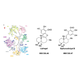 The inventors found that Liphagal and its analog Siphonodictyal B inhibited multiple kinase activities in addition to PI3K. The inhibitors can be used as inhibitors of CDK7, CDK4, CDK6, PIM2, TSSK3, MST4, NEK6, MAP3K, MST3, DDR1, SPHK1, CaMK1, AurA, BRK, CaMK4 and PIM1 kinases. Studies using human colorectal cancer cells revealed that Siphonodictyal B induces expression of pro-apoptotic proteins by activation of the P38 MAPK pathway following an increase in intracellular reactive oxygen species, leading to apoptosis. In addition, Siphonodictyal B showed anti-tumor effects in a human colorectal cancer cell line tumor-transplanted mouse model.