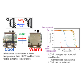 There are known compounds that exhibit phase separation when solutes dissolved in solvents exceed a certain temperature (LCST). Poly (N-isopropylacrylamide) (PNIPAm) has been studied as a representative of these compounds, and applications to temperature-responsive smart windows have been reported. However, since the LCST of PNIPAm is constant at 31°C, a compound that can flexibly respond to the LCST depending on ambient temperature has been desired in industry. The inventors succeeded in synthesizing a new compound. This compound is characterized by the ability to control the LCST within the range of about 25~55°C by modifying a part of its structure. When applying to smart windows, most of them require a power supply because they switch between transmission and non-transmission by turning the voltage on and off. On the other hand, smart windows using this compound can be used in places without a power supply because they switch between transmission and non-transmission spontaneously according to changes in the outside temperature. Furthermore, by controlling the heat according to the degree of light transmission, it is expected to be effective against heat.