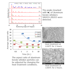 Aluminum borate whiskers have excellent mechanical strength and heat resistance, and are mainly used as reinforcing materials for metal materials. For example, a flux method using a melting agent is used as a manufacturing method. However, at the end of the manufacturing process, it is necessary to separate the melting agent from the whisker, which requires time and effort. The present invention solves the problems of the conventional method by constructing a reaction process using a liquid solvent, and demonstrates the simple and large-scale production of aluminum borate whiskers. More specifically, the process involves dissolving metallic aluminum in alcohol by adding halide ions and adjusting the pH, mixing the boron compound with water, and calcining the precipitated precipitate by adjusting the pH. The aluminum borate whiskers produced in this way have a high affinity for light metals such as aluminum and magnesium, and are expected to be used in automobile engine parts and semiconductor manufacturing.