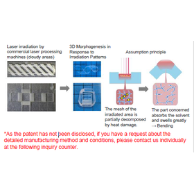 Hydrogel, which is one of the crosslinked polymers, is expected to be used as biomimetic materials because its hardness and water content are similar to those of living organisms. On the other hand, because of its flexibility, it is not suitable for general processing methods such as injection molding, drawing, and cutting. Therefore, methods of molding inside a mold or using a 3D printer have been devised. However, the former has a problem that it is difficult to prepare a mold and cope with complicated shapes, and the latter requires a long time for printing and is difficult to select a material. To solve this problem, the inventor has found a molding method that can be obtained by spontaneous bending by laser irradiation of the gel surface and swelling of the cut part with a solvent. Since the bending is triggered by swelling due to the solvent, for example, if a hydrogel is used, it is possible to transform the shape from a flat portable shape to a shape meeting the purpose by supplying water just before use. In addition, the present invention is most effective in a double network using water as a solvent, but the same phenomenon has been confirmed in an organogel such as rubber, and can be applied to any kind of gel.