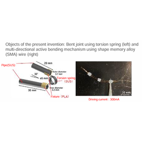 In the fabricating industry, with the diversification of customer needs, the demand for high-mix, low-volume production and complex fabricating technology is increasing. In particular, for endoscopes, which are produced in high-mix, low-volume production, the parts processing and assembly work are generally carried out manually by skilled workers. However, there have been problems such as variations due to individual differences and time required for production by hand. In order to solve the above problems, the present invention has developed a method for automatically and collectively creating complex parts fabricating and assembly processes using a 3D printer and a robot arm. Specifically, a fixing table and a jig are laminated with a soluble material, and the parts are arranged on the main body using a robot arm. Then, the fixing table and the jig are dissolved (see right figure). We were able to test and confirm the operation of this technology by applying it to the joint of a chopstick endoscope used in otology (upper left figure) and a multi directional active bending mechanism using shape memory alloy (SMA) wire (upper right figure). In the future, we aim to apply this technology to various minimally invasive medical devices and some consumer products by mounting various micro electronic components.