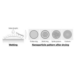 Recently, nanomaterials, including nanofluids and polymer nanocomposite materials, have been extensively investigated. These materials have diverse applications, such as conductive nano-inks, solar cells, and sensors. In contrast, Inkjet technology offers several advantages, including a simple device configuration, high flexibility in material combination, low environmental impact due to on-demand production, and scalability. These attributes have driven growing interest in printed electronics technology, which applies this technique to the fabrication of electronic circuits and devices. The present invention enables quantitative evaluation of characteristic patterns that emerge in nanofluid droplets ejected from an inkjet nozzle and adhered to a substrate. By developing a mathematical model governing droplet wetting behavior, it became feasible to design flow patterns within nanofluid droplets and nanoparticle patterns deposited on a substrate. Furthermore, a measurement technique for nanofluid droplets has been successfully developed. (See T24-030).