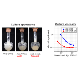 Filamentous fungi represented by Aspergillus oryzae have high production capacity of proteins and low molecular weight compounds and are utilized for industrial production by fermentation. However, in liquid culture, hyphae are entangled and clump together, and there is a limit to maximizing the space of the culture tank and increasing the production of substances. Highly dispersible filamentous fungi (AGΔ-GAGΔ, see Related Inventions and Documents), in which the viscosity of the culture solution and the formation of clumps are drastically reduced compared to the wild-type strain, is a technology to solve this problem. On the other hand, AGΔ-GAGΔ has excellent culture properties as a filamentous fungus, but the viscosity of the culture solution is still higher than that of yeast and bacteria. Therefore, it is required to develop a low viscosity strain that enables high gas dispersion and product yield under lower agitation power (energy). The present invention relates to the next generation highly dispersible filamentous fungus AGΔ-GAGΔ-ΔX, in which a deletion of the novel property modifying factor X gene is additionally introduced into AGΔ-GAGΔ strain. In this new strain, a significant drop in culture viscosity improved agitation efficiency and led to enhanced productivity compared to AGΔ-GAGΔ. Furthermore, the addition of a deletion of the rolA gene encoding surface-active protein RolA enhances the efficiency.