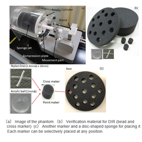 In recent years, deformable image registration (DIR) has been used to create radiotherapy treatment plans in medical practice. The accuracy of DIR is evaluated by the small difference between the image after deformation by DIR and the image obtained by imaging. To evaluate this, the common point (landmark point) between two images is found and compared. However, since the deformation by DIR is a non-rigid deformation, the relative positional relationship of each position such as the distance between the vertices of the image to be mapped to the image and the angle of the vertices is not necessarily preserved. Therefore, it is necessary for the coordinator to make a judgment based on his/her experience, and there is a problem that the burden on the coordinator is large. To solve this problem, the inventors developed a phantom in which a rod simulating a tumor and an organ can be inserted, and an algorithm for verifying the accuracy of DIR using this phantom, and completed the present invention. In addition to being able to reproduce various shape changes easily by replacing the rod, the phantom of the present invention can automatically set thousands of landmark points by applying position information at the time of medical image acquisition, and can automate all DIR accuracy evaluations.