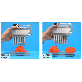 Robots that explore extreme environments such as planets, caves, and volcanoes are being developed. In such environments, it is difficult to survey topography in advance, so robots that can move on unknown surfaces are required. In addition, due to the recent labor shortage, there is a great demand for mechanizing operations in factories and warehouses. In order to mechanize operations performed by human hands, robot hands capable of grasping various objects by one mechanism are required. As described above, if a gripper capable of grasping unknown shapes can be realized, there will be a great demand. The present invention relates to a gripper that can grasp unknown shapes by fitting and deforming with the shape of the object. The ordinary grippers usually cannot grasp the concave shapes, but the present mechanism can grasp by fitting them. In addition, it is advantageous that both convex and concave shapes can be grasped by the same operation using only one actuator. In the Related Works No.2, it is possible to view a video (Japanese).