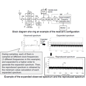 In recent years, with the diffusion of the wireless Internet of Things (IoT), interference between different IoT systems are reported. In order to avoid those interferences, real-time frequency detection techniques are used to monitor signals and noise in the IoT frequency band in milliseconds level. However, monitoring these bands in real time all at once using Nyquist sampling is not easy because the high-speed analog-to-digital converter (ADC) that exceeds 12 Ghz is necessary. This invention made possible to monitor in real-time several different frequency bands with a real-time frequency monitor using an undersampling reception method by following steps: the step of obtaining a frequency spectrum from 0 to the Nyquist frequency, the step of generating a frequency spectrum by reversing the data at each Nyquist frequency, and the step of performing a minimum value calculation on each of the obtained above data to generate a single frequency spectrum which reproduces the received frequency spectrum.