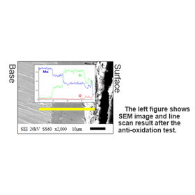 Mo material is excellent in heat resistance. Since Mo material is easily oxidized at high temperature, it is indispensable to form MoSi2 protective film to prevent it. As a conventional method, the pack cementation method is known. Although this method can stably form MoSi2 films, it requires processing conditions of 1000 ℃ or more and 10 hours or more, leading to high costs. The present invention relates to a method of forming a MoSi2/WSi2 film (e.g., 30 μm) on the surface of a Mo/W material by simply immersing a base material in a bath (e.g., 800 ℃. for 15 min.). According to this method, the largest advantage is that there is no restriction on the shape that can be treated. The base material processed into a product shape can be subjected to silicification treatment. The Mo material having the present invention has been confirmed to exhibit excellent oxidation resistance (see right table), and is useful as a more convenient silicification method.