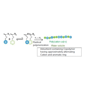 Water pollution is a serious problem on a global scale, and it is required to develop environmentally friendly technologies for the recovery and removal of pollutants with low energy consumption and without the use of large amounts of chemicals. One method of wastewater treatment is to remove pollutants using adsorbents. However, existing adsorbents have a problem that their adsorption capacity is lost due to the Debye shielding effect caused by salts contained in wastewater. The present invention relates to a novel adsorbent consisting of a copolymer of a monomer containing a cationic or anionic functional group and a monomer containing an aromatic group, which exhibits good adsorption performance even in wastewater with a high salt concentration. By using this adsorbent, it is expected to more efficiently and inexpensively remove chemical substances in industrial wastewater, especially ionic dyes contained in wastewater from textile dyeing factories, ink factories, etc.