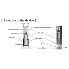 By analyzing the status of the biological clock of living cells, it is expected to be useful for one's own physical condition, disease diagnosis and prevention. Conventional methods for collecting cells include skin biopsy, liposuction, hair collection, and oral mucosa collection with a cotton swab, but all of these methods are highly invasive. The present invention relates to a device capable of collecting cells from the mucosa minimally invasively using ultrasound. To repeatedly collect cells from the mucosal tissue, a minimally invasive cell collection device was fabricated using a Langevin type vibrator, a metal rod, and a jig with a flow path. In a cell collection experiment from porcine esophageal mucosal tissue, approximately 3,000 cells were collected per minute.