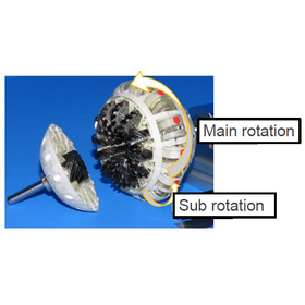 Invention of drive mechanism for all-directional movement suitable in a small area All-directional movement with simple mechanism Conventional : Complex & large drive mechanism Need to control many inputs by synchronization Invention : Simple & small with only 5 components All-directional movement by simply changing the rotation speed ratio of 2 inputs Excellent step traversability & runnability Traversability: Experimental confirmation of traversing a step having the same height as the wheel radius ⇒ Able to climb over indoor thresholds and carpets Runnability: 1 Even 1 wheel spins out, the other wheels will move ⇒ Runs even on uneven flooring and outdoor surfaces 2 Magnetic cog-wheel with non-contact gear is used for power transmission ⇒ Runs in dusty and large temperature gap environments ⇒ Able to operate in sanitary environment where machine oil is not appropriated