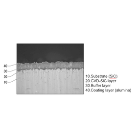 Silicon carbide materials and silicon carbide fiber-reinforced composites are expected to replace Zircaloy and other metals as structural materials for next-generation nuclear reactors. However, these materials require anticorrosion coatings when they are exposed to radiation, high temperatures, and high-pressure water. Although metal coatings have been used in the past, there has been a problem that they cannot fully exert their anticorrosion function due to delamination and cracking of the substrate caused by thermal expansion coefficient differences and swelling differences. A silicon carbide layer, an intermediate layer and a coating layer are laminated on a substrate. As a result, it has become possible to provide a silicon carbide material or a silicon carbide fiber-reinforced composites composed of full ceramics with improved anticorrosion function by alleviating thermal expansion coefficient difference and swelling difference with a base material.