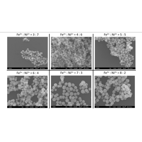 Submicron-sized magnetic particles are expected to be used as materials for high-frequency equipment operating at several GHz. Demand for submicron-sized magnetic particles is increasing amid the increasing use of 5G and the challenge of suppressing high-frequency noise. However, it is generally difficult to produce submicron-sized particles. For example, in a top-down method such as grinding raw materials, the production of micron-sized particles is limited, and even in a bottom-up method such as reducing and depositing metal ions, microparticles aggregate to form micron-sized secondary particles. In addition, it is difficult to control the composition when reducing multiple metal ions and depositing compound microparticles. The present invention relates to a method for producing submicron microparticles of Fe-Ni-B and Fe-Co-B soft magnetic materials. As shown in the upper right panel, it is characterized in that a true spherical primary particle without agglomeration is formed, and the composition can be easily controlled. The right panel shows the frequency characteristics of the complex permeability of the fine particle. Since the µ'' becomes near 0 up to 1 GHz and shows a peak in a few GHz band, the following applications can be expected.