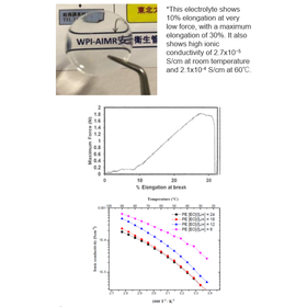 Since lithium-ion battery using liquid electrolyte has risk of ignition and rupture, practical application of safe solid electrolyte is expected. Among solid electrolytes, those using polymers have an excellent ability of forming and processing. This allows to use different shape of polyelectrolyte, but high stress is applied to the electrolyte. This invention is about a polyelectrolyte with excellent elasticity and flexibility. Since this polyelectrolyte can be highly elongated with little force, the applied stress can be easily dispersed, and shows high durability.
