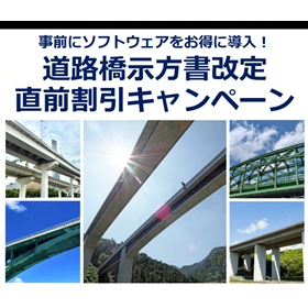 このたび弊社では道路橋示方書改定に伴い、ソフトウェア新規導入を対象としたキャンペーンを実施いたします。道路橋示方書改定前に弊社製品をお得にご導入が可能ですので、是非この機会にご検討のほどよろしくお願いします。