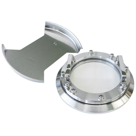 化学メーカー様に納入させていただいた、持ち手とカバーを付けたのぞき窓(サイトグラス)です。